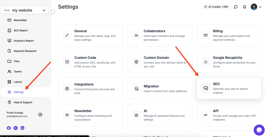 On the Settings page, click on the SEO option.