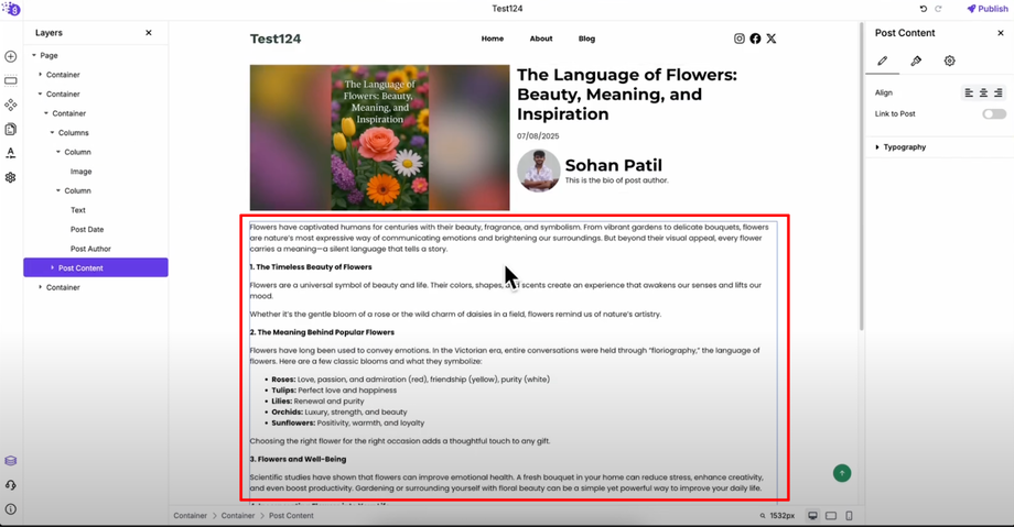 Learn how to customize the layout of a single CMS post page in Grigora for a professional, branded look. This guide walks you through creating post templates, designing layouts with dynamic content fields, and ensuring consistent formatting across all your blog posts.