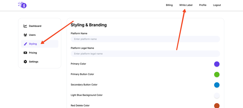 Once your custom domain is connected, you can start customizing the look and feel of your Grigora White Label platform to align with your brand identity. Follow these steps to rebrand the platform:
