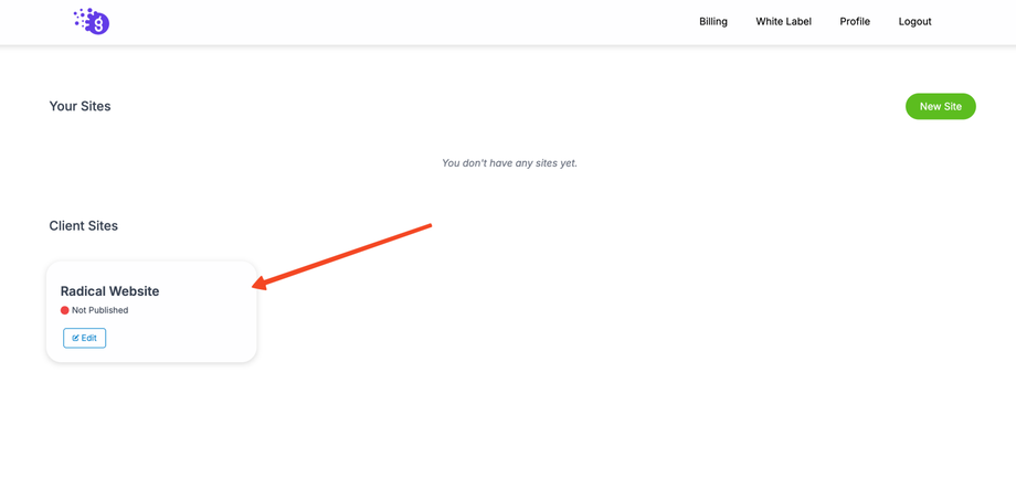 You can easily access and edit your clients' websites directly from your main dashboard, just as you would with your own projects. This provides a centralized point of control for all your client sites.