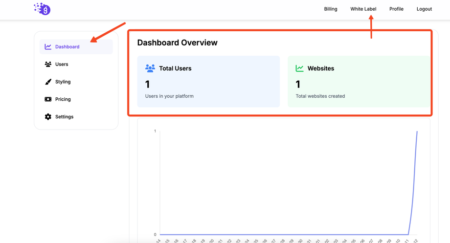 The White Label dashboard also provides you with key metrics and insights into your clients' activity, helping you understand platform usage and business growth.